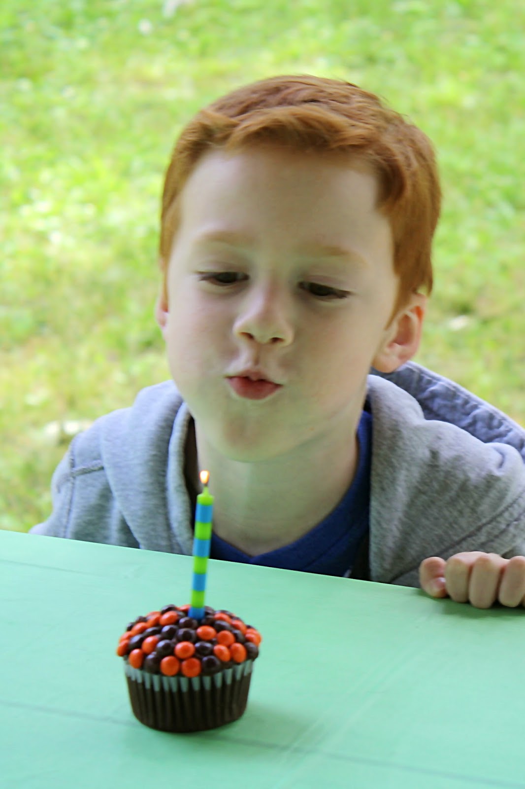 The bike provided entertainment till dinner and then we had a fun birthday cake. I showed Peter different pictures of cakes that I thought I could recreate and he choose the basketball cake. (Made me happy! I love basketball. We will let Peter choose what he is interested in and what sports, if any, he wants to pursue, but I sure love the game of basketball!). The cake looked alright and tasted delicious! Score for Peter!